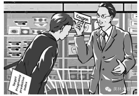 美国一名男子闯入他家附近的一家美国零售连锁超市Target店铺(美国第三大零售商塔吉特)进行抗议:“你们竟然给我17岁的女儿发婴儿尿片和童车的优惠券。”店铺经理立刻向来者承认错误,但是其实该经理并不知道这一行为是总公司运行数据挖掘的结果。如图所示。一个月后,这位父亲来道歉,因为这时他才知道他的女儿的确怀孕了。Target比这位父亲知道他女儿怀孕的时间足足早了一个月。
