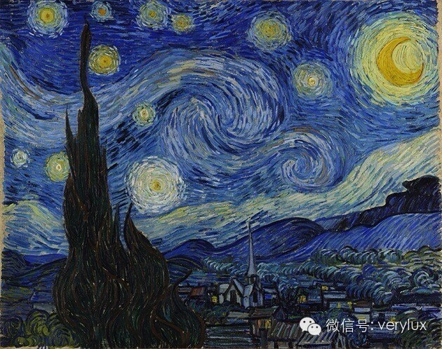 梵高的绘画技巧并不高明,他浓烈的色块和粗糙的线条里燃烧着生命的激情,向日葵像金黄的火苗,麦田是焦虑的黄,天空是深不见底的蓝,衬着苍凉的忧郁。扭曲的线条、厚厚的颜料无不透出梵高内心的痛苦、挣扎和压抑着的爱。