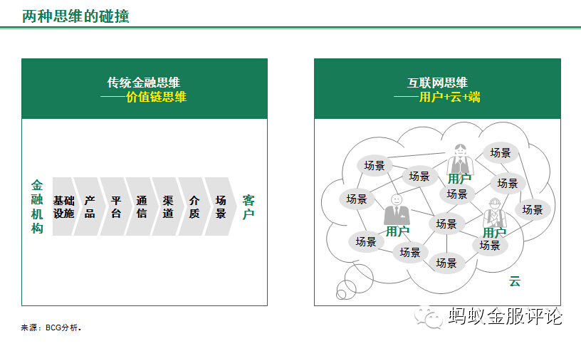 平台模式在互联网行业被广泛应用,因此当互联网企业进入金融业务时也自然地延续了这一战略。但对传统金融机构来说,平台仍是相对陌生和抽象的概念,如何改变思路及试行平台化运营也可能是传统金融的又一突破点。