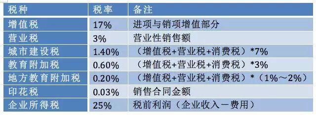 根据公司营业范围、坐标城市的不同,税费成本亦有所变化。增值税、消费税、营业税及三税附加,还有印花税及企业所得税。下面这张表格中数据可供大部分创业公司参考: