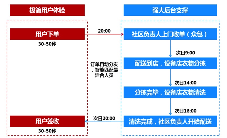 为了配合前端极简、极致的用户体验,e袋洗设计了强大的后台配套体系: