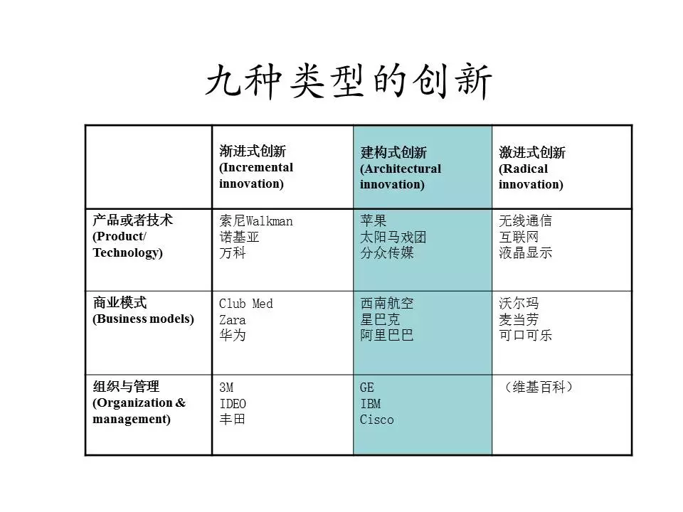 这么多源源不断的创新,怎么去把握它?从学理上来讲,左边的这种渐进式创新,力度往往不太够,右边的激进式创新,往往是可遇不可求,所以,真正最有可操作性的创新是中间的建构式创新。建构式创新是什么东西呀?其实很简单,就是我们日常在生活中经常说的那几个词:混搭、杂拌、乱炖、穿越、跨界、脑洞大开(众笑)。它的本质是什么?其实就是一个词——连接。不仅是人与人,刚才讲微信是人与人之间的连接,而我强调的是不同的概念、不同的功能、不同的东西之间的连接,它是创新的本质。