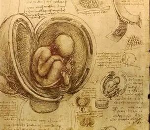 达芬奇的人体解剖研究,在蜷缩在子宫中的婴儿下方,他画了一颗种子