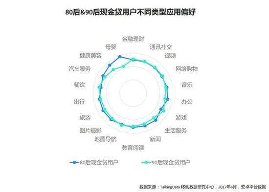 80后银行信用卡用户相对偏爱母婴、办公、图片摄影和出行等类型的应用,90后银行信用卡用户则相对偏爱视频、餐饮和网络购物等类型的应用。