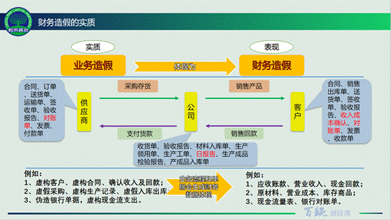这张图展示了制造或流通企业财务造假的实质。以互联网为代表的新业态企业与之有所不同,但也有上下游企业、也有在线电子化的合同凭据、也有资金流水,因此从分析财务造假的角度也可以参照该图。