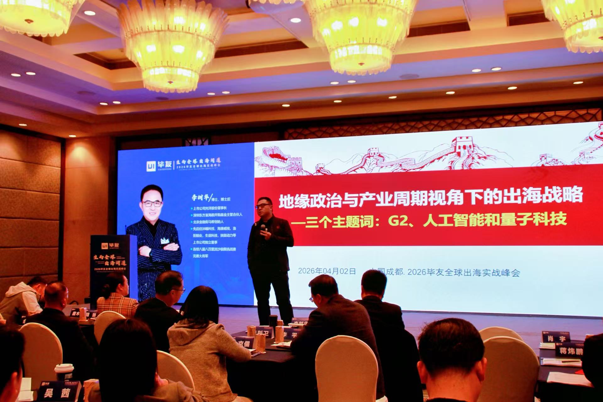 2026年4月2日,“生而全球,出海问道——2026毕友全球出海实战峰会”在成都圆满举办,以“战略引领+实战赋能+资本加持+生态共建”为核心,分为上午闭门课与下午公开峰会两大板块,吸引了科技、能源、基建、消费、跨境电商等多领域的300多位企业家齐聚一堂,汇聚行业大咖、官方机构代表、投资机构负责人,共探中小企业出海破局之道,共绘全球化发展蓝图。
